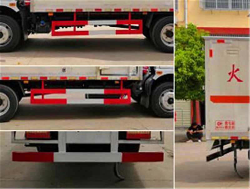 其它 | 該車適用于運(yùn)輸危險(xiǎn)品。廂體頂部封閉,不可開啟。選裝右側(cè)箱體不開門,選裝側(cè)門型式及位置。危險(xiǎn)貨物運(yùn)輸車輛的類型(EX/Ⅲ型車輛)。僅采用底盤子午線輪胎和帶ABS的底盤,該車前輪安裝盤式制動(dòng)器,前置排氣管,裝配限速裝置,限速80km/h。安裝帶有衛(wèi)星定位功能的行駛記錄儀。安全裝置為導(dǎo)靜電帶,用于防止靜電。防護(hù)材料:Q235B碳鋼,連接方式:左右側(cè)面及后下部防護(hù)均采用焊接連接,后部防護(hù)斷面尺寸(mm):120×50,后部防護(hù)離地高度(mm):500。整車長(zhǎng)/軸距/后懸對(duì)應(yīng)關(guān)系為(mm):7150/4050/1970,7150/3950/2070,7100/3800/2170。運(yùn)送爆炸品的品名:黑火藥,壓縮黑火藥,電(非電)引爆雷管,爆破炸藥,導(dǎo)爆索,點(diǎn)燃導(dǎo)火索。運(yùn)送爆炸品的項(xiàng)號(hào):1.1D,1.1D,1.1B,1.1D,1.4G.1.4G。CY4SK261/CY4SK361/D25TCIF1/D30TCIF1/D40TCIF1/NV30-C6D/YCY30165-60/YCS04190-68發(fā)動(dòng)機(jī)油耗值分別為21.3/21.3/21.3/21.3/21.4/21.4/21.3/21.4(L/100km)。ABS型號(hào)/廠家:ABS型號(hào):ABS/ASR-24V-4S/4M,廠家:襄陽(yáng)東風(fēng)隆誠(chéng)機(jī)械有限責(zé)任公司。隨底盤選裝駕駛室。 | ||