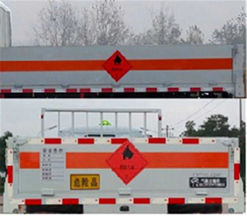 其它 | 該車適用于運輸危險品為危險貨物運輸車。隨底盤選裝駕駛室,選裝無倉欄結構。主要用于運輸具有獨立容器(瓶)包裝的液化石油氣,丁烷,乙炔,乙烷,丙烷,丁烯,打火機或打火機加油器,二氧化碳,壓縮氧(氮,空氣,氦,氬,氖),類項號:2.1,2.2.該車運輸的介質為2.1項易燃氣體時,車輛采用”易燃氣體”標識牌,運輸的介質為2.2項非易燃無毒氣體時,車輛采用”不燃氣體”標識牌.整車長/軸距/后懸長的關系:5100/2600/1319,5100/2800/1119,5100/3000/919;該車安裝帶有衛星定位功能的行駛記錄儀,僅采用前盤制動器和安裝ABS以及前置消聲器的底盤,采用子午線輪胎,安裝限速裝置,限速80km/h.專用裝置為固定用卡槽.ABS型號及廠家:APG3550500A,浙江亞太機電股份有限公司。僅采用發動機LJ4A15Q6,對應油耗申報值為9.1L/100km。 | ||